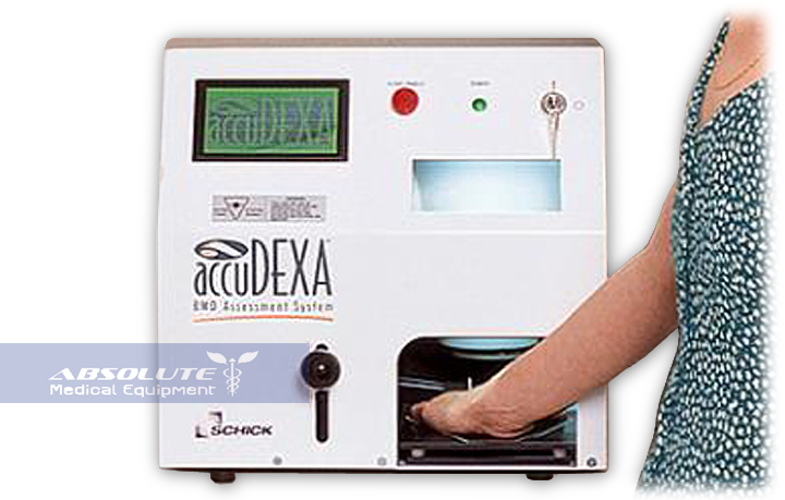 Schick AccuDEXA BMD Portable Bone Densitometer. Schick AccuDEXA BMD Portable Bone Densitometer – Tabletop DEXA Scanner. Operating the AccuDEXA is just super easy. After placing the patient’s hand in the unit, simply follow a simple set of commands in the view screen. In 30 seconds you have the results you need. ... View Full Source