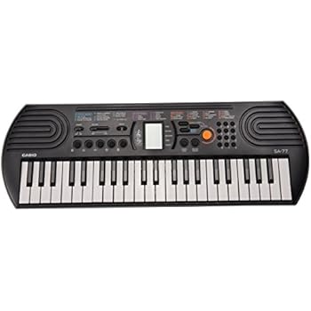 Casio SA-76 44-Key Mini Personal Keyboard The 44 key Casio SA-76 offers children the essentials for playing those first tunes. 100 tones, 50 rhythms and 10 integrated songs provide variety. The LSI sound source and the 8-note polyphony ensure good sound quality. The LCD screen helps with selecting different music options. ... Read Here